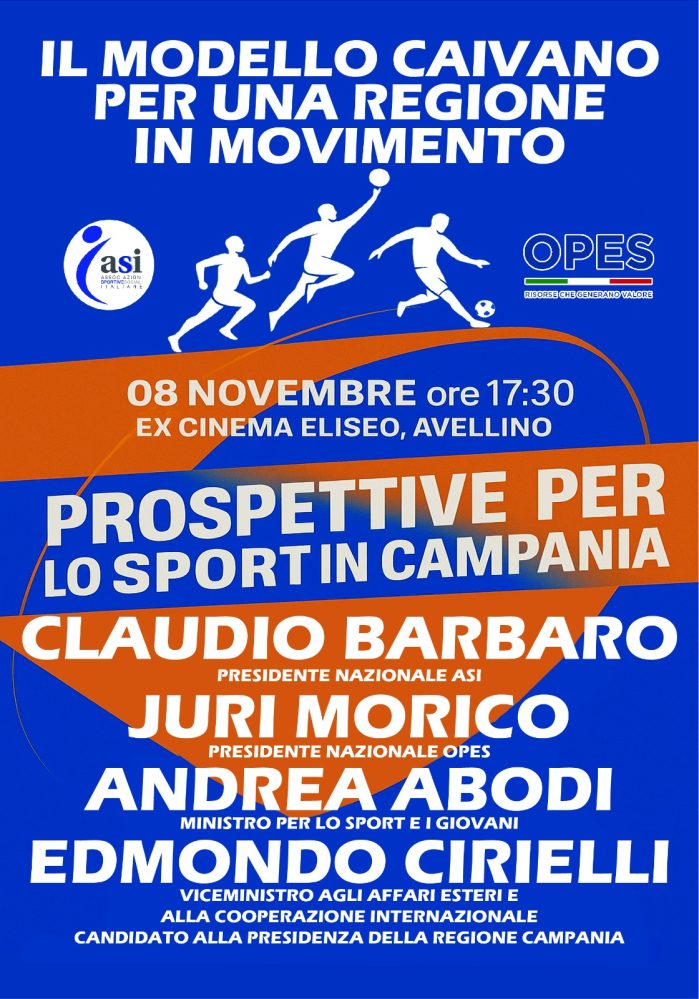 Sabato 8 novembre, alle ore 17.30, il Cinema Eliseo di Avellino ospiterà un importante incontro dedicato al futuro dello sport in Campania, un tema che unisce istituzioni, enti di promozione sportiva e realtà territoriali in un dialogo aperto sulle prospettive di crescita del settore. L’evento vedrà la partecipazione di figure di primo piano del panorama politico e sportivo nazionale: