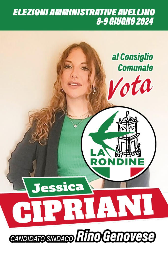 “Ho tante idee da realizzare, che spero possano diventare realtà attraverso il vostro sostegno. Auspico di potervi incontrare tutti per poterci confrontare sulle azioni da intraprendere. Sono convinta, infatti, che il modus operandi migliore sia la collaborazione e lo scambio di idee. Insieme si può e si deve cambiare” conclude il suo appello Jessica Cipriani candidata con la lista “La Rondine”, a sostegno di Rino Genovese sindaco.
