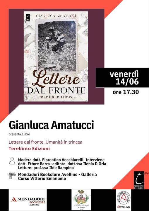 Il Terebinto Edizioni è lieto di annunciare la presentazione del libro “Lettere dal Fronte: Umanità in Trincea” di Gianluca Amatucci, che si terrà, oggi, venerdì 14 giugno 2024, alle ore 17:30, presso il Mondadori Bookstore in Galleria Corso Vittorio Emanuele, Avellino.