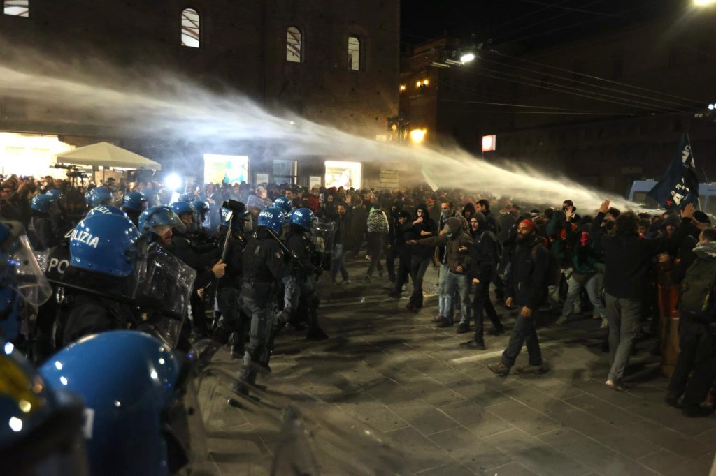 Momenti di forte tensione nel cuore di Bologna durante la manifestazione organizzata dai Giovani Palestinesi in ricordo del 7 ottobre 2023, data dell’attacco di Hamas a Israele. Nonostante i divieti imposti dalla Prefettura, alcune centinaia di persone si sono radunate in Piazza del Nettuno a partire dalle 19.30, dando vita a un presidio che è presto degenerato in scontri con le forze dell’ordine. I primi tafferugli si sono verificati in Via Rizzoli, poco fuori Piazza Maggiore, dove la polizia ha effettuato alcune cariche di alleggerimento per contenere l’avanzata dei manifestanti. Secondo le prime ricostruzioni, alcuni gruppi avrebbero tentato di superare i cordoni di sicurezza per proseguire in corteo verso il centro storico. Gli agenti hanno fatto ricorso anche agli idranti in Via Ugo Bassi, mentre i manifestanti si disperdevano tra le vie limitrofe. La zona tra Piazza del Nettuno e Piazza Maggiore è rimasta isolata per oltre un’ora, con diversi fronti di tensione che si sono spostati rapidamente. Al momento non si hanno notizie di feriti gravi, ma si registrano alcuni contusi sia tra i partecipanti sia tra le forze dell’ordine. Parallelamente, a Torino si è svolta una manifestazione molto partecipata, con migliaia di persone in corteo per esprimere solidarietà alla popolazione palestinese e ricordare l’anniversario dell’inizio della guerra a Gaza. L’evento nel capoluogo piemontese si è svolto finora senza incidenti di rilievo. Le autorità bolognesi hanno ribadito la necessità dei divieti per ragioni di ordine pubblico, mentre gli organizzatori hanno denunciato la “repressione del dissenso” e hanno annunciato nuove mobilitazioni nei prossimi giorni.