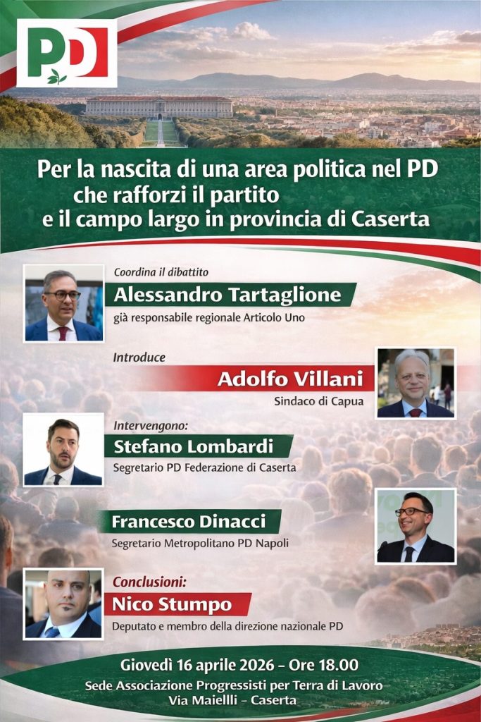 Si terrà domani, giovedì 16 aprile alle ore 18.00, presso la sede dell’Associazione Progressisti per Terra di Lavoro in via Maielli, un’iniziativa politica che punta alla costruzione di una nuova area interna al Partito Democratico casertano. L’obiettivo è chiaro: rafforzare il partito e rilanciare la prospettiva del cosiddetto “campo largo” in tutta la provincia. A coordinare il dibattito sarà Alessandro Tartaglione, già responsabile regionale di Articolo Uno, mentre l’apertura dei lavori sarà affidata al sindaco di Capua, Adolfo Villani, chiamato a introdurre i temi centrali del confronto. All’incontro parteciperanno anche Stefano Lombardi, segretario della Federazione provinciale del PD di Caserta, e Francesco Dinacci, segretario metropolitano del PD Napoli. Le conclusioni saranno invece affidate a Nico Stumpo, deputato e membro della direzione nazionale del partito. L’iniziativa si inserisce in un più ampio tentativo di ricomposizione e rilancio delle forze progressiste sul territorio. Al centro del confronto vi sarà la necessità di costruire un’alternativa credibile alle destre, attraverso un percorso politico capace di mettere a sistema le diverse anime della sinistra. Tra i temi prioritari indicati dagli organizzatori figurano la tutela dei diritti sociali, il rafforzamento della sanità pubblica e l’attenzione alla sostenibilità ambientale, considerati pilastri fondamentali per una nuova proposta politica radicata nei bisogni reali dei cittadini. La nascita di questo coordinamento a Caserta rappresenta un primo passo concreto verso un progetto che ambisce ad andare oltre la dimensione elettorale, puntando su una visione condivisa della società e su un rinnovato rapporto con il territorio. L’obiettivo è quello di costruire un’azione politica più incisiva, fondata su un patto di lealtà tra le forze del campo largo e capace di affrontare con maggiore efficacia le sfide amministrative e sociali della provincia.