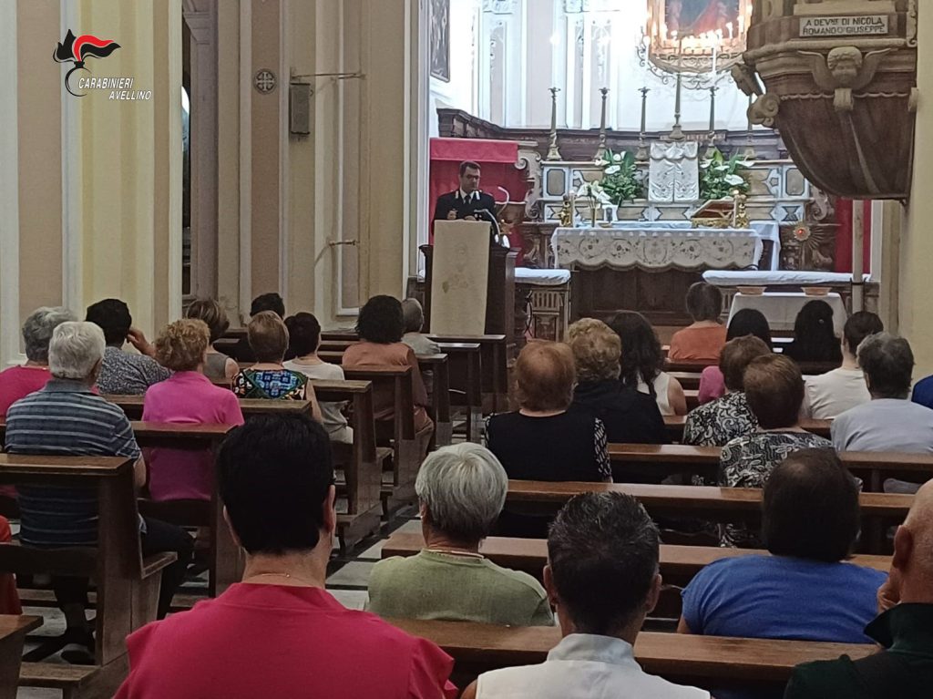 Proseguono nei comuni dell’Irpinia, gli incontri con i cittadini, promossi dal Comando Provinciale dei Carabinieri di Avellino, contro il fenomeno delle truffe agli anziani.  Ieri mattina, al termine della celebrazione liturgica in onore dell’Assunzione della Vergine Maria al cielo che si è tenuta presso la chiesa di “Santa Maria del Soccorso” in Castelfranci, è salito sul pulpito il Comandante della locale Stazione Carabinieri che ha partecipato, ai presenti, la vicinanza dell’Arma alla cittadinanza, anche in questi particolari giorni di festività estive. Il privilegiato contesto, infatti, ha facilitato una comunicazione diretta con i partecipanti ai quali, sono state date alcune utili indicazioni per difendersi dall’odioso e sempre più ricorrente fenomeno delle truffe. Non una lezione tecnica, ma semplici accorgimenti di carattere pratico per riconoscere, in tempo, il modo con cui i truffatori approcciano le potenziali vittime, e un consiglio su tutti per scongiurare ogni cattiva sorpresa: chiamare il numero di emergenza “112”, attivo 24 ore su 24, prima di soddisfare richieste di pagamento o far entrare persone sconosciute in casa. Non sono mancati naturalmente riferimenti ai furti in abitazione, altro fenomeno delittuoso che impegna ogni giorno i Carabinieri del Comando Provinciale di Avellino con il suggerimento, specie in questo periodo di grande caldo, di non lasciare finestre e porte aperte per cercare refrigerio, scoraggiando così, l’entrata in azione di malviventi.   L’incontro, che ha riscosso un grande plauso, sarà replicato anche negli altri comuni della provincia presidiati dall’Arma dei Carabinieri.