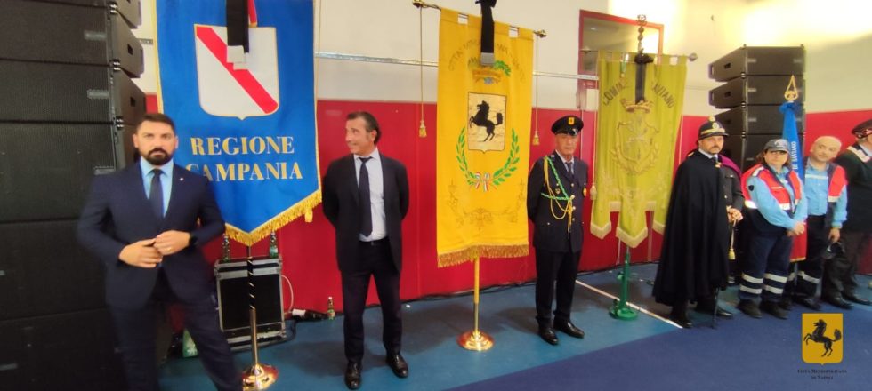 Ai funerali presente anche il consigliere metropolitano Giuseppe Bencivenga, sindaco di Frattaminore, accanto ad altri sindaci del territorio, e il gonfalone, listato a lutto, della Città Metropolitana di Napoli.