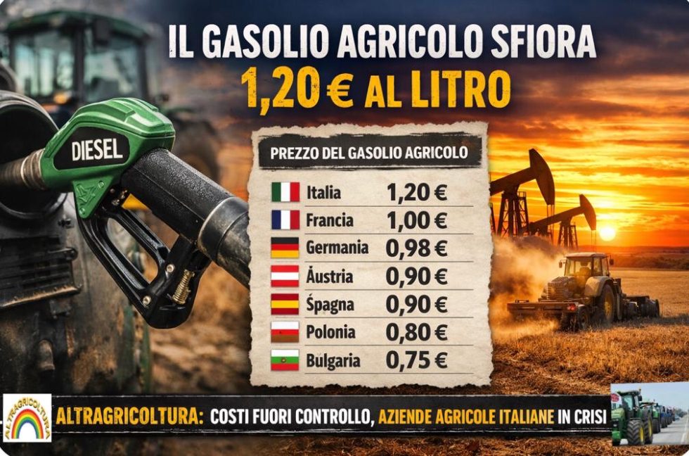 Il prezzo del gasolio agricolo in Italia ha superato in diverse aree la soglia di 1,20 euro al litro, causando forti tensioni nelle imprese agricole. Secondo Altragricoltura, il peso della fiscalità e dell’IVA amplifica ogni aumento del petrolio, rendendo più difficile per gli agricoltori sostenere i costi di produzione senza ricorrere all’indebitamento. Il confronto con l’Europa evidenzia differenze significative: in Francia il gasolio agricolo costa circa 1,00 €/litro, in Germania 0,98 €/litro, mentre in Paesi come Polonia e Bulgaria il prezzo scende rispettivamente a 0,80 e 0,75 €/litro. Molti Stati hanno introdotto misure di compensazione fiscale per attenuare l’impatto degli aumenti energetici, strumenti che in Italia restano ancora limitati. Altragricoltura chiede interventi urgenti al Parlamento e al Governo: revisione delle accise sul gasolio agricolo, strumenti fiscali che evitino la doppia imposizione e sostegni mirati per agricoltura e pesca. “Quando il costo dell’energia costringe un’azienda agricola a fermarsi, non è l’agricoltore ad aver fallito, ma un sistema che non garantisce le condizioni minime per produrre”, sottolinea l’associazione.