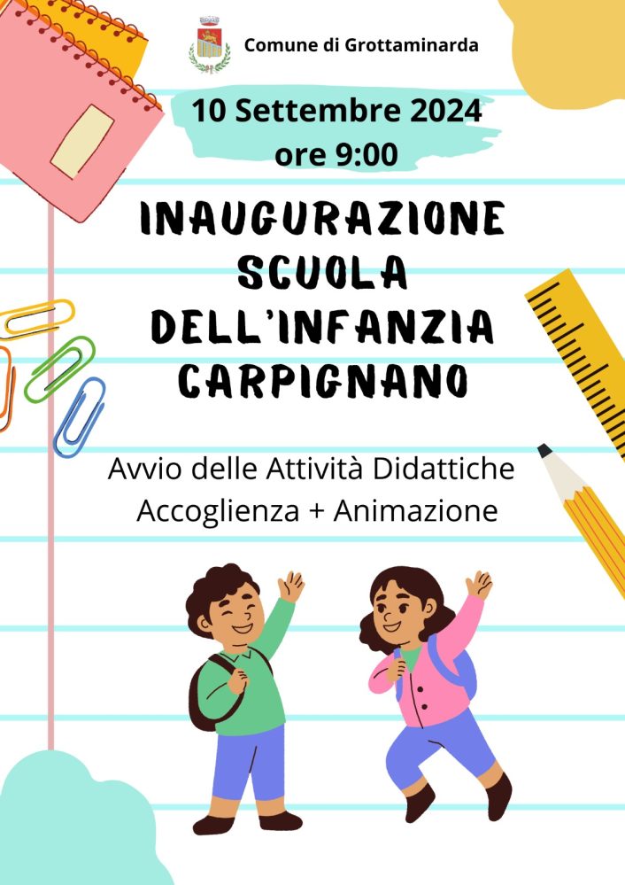 Previsti per domani, martedì 10 settembre 2024, l’inaugurazione e l’inizio delle Attività didattiche della Scuola dell’Infanzia di Carpignano. Il plesso ha trovato nuova vita in seguito alla decisione di trasferirvi gli alunni più piccoli dell’Istituto Omnicomprensivo “San Tommaso d’Aquino” interessato da lavori di adeguamento sismico. La benedizione ed il taglio del nastro si terranno alle ore 9:00. Nell’ambito della consueta “accoglienza” ai bambini da parte delle insegnati, previste anche attività di gioco e animazione offerte dall’Amministrazione comunale. “Con grande orgoglio siamo pronti a cominciare, insieme, questo speciale anno scolastico. È tutto pronto: sono state allestite le nuove aule, i nuovi servizi, per una scuola che completa l’offerta formativa del plesso di Carpignano. Solo grazie ai sacrifici ed all’impegno di tutti è stato possibile raggiungere questo magnifico risultato. Sento di estendere i ringraziamenti a tutti i genitori che hanno collaborato su questa importante scelta – afferma Marilisa Grillo, Assessora alla Pubblica Istruzione – I bambini rappresentano il futuro, l’energia, la gioia di vivere, e questo taglio del nastro è l’emblema della rinascita della Comunità di Carpignano. Buon anno scolastico a tutti” conclude Grillo.
