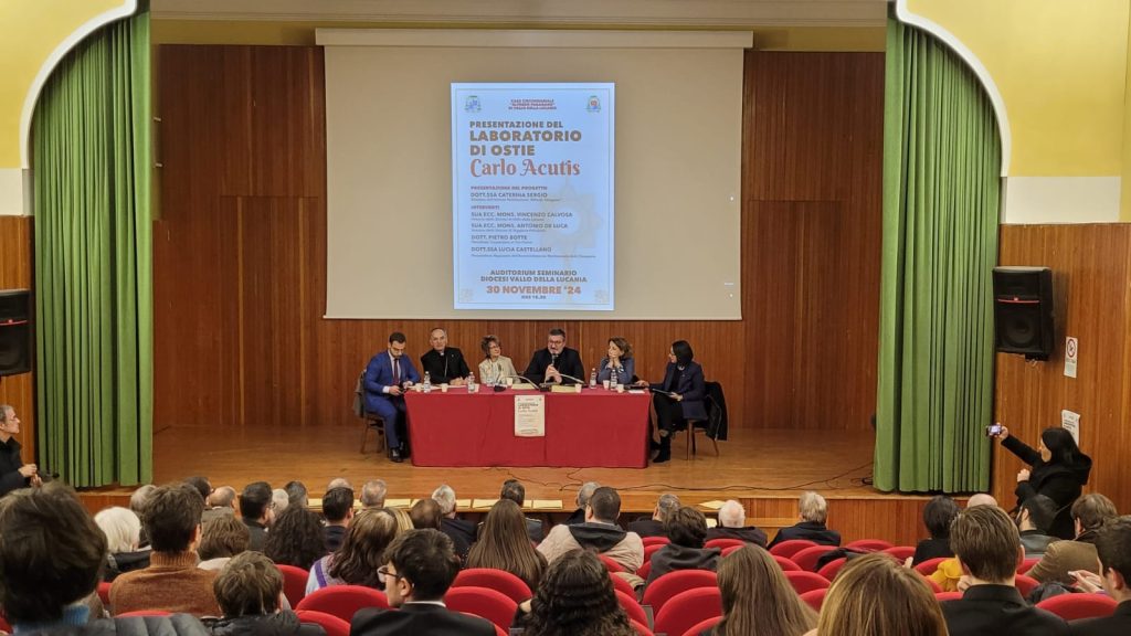 “Confidate nella misericordia di Dio. Ognuno di noi è peccatore ma è speciale ed unico e quotidianamente è chiamato a seguire la strada della santità. Coraggio, pregate e seguite l’esempio di Carlo perché tutti abbiamo una speranza”. Così Antonia Salzano, la mamma del Beato Carlo Acutis nel videomessaggio ai detenuti del carcere di Vallo della Lucania, questa mattina, durante la cerimonia di presentazione del laboratorio di ostie “Pane Quotidiano Carlo Acutis” interno alla casa circondariale “Alfredo Paragano” di Vallo. Ed è stato intitolato al Beato Carlo Acutis, protettore dei millennial, che il 25 aprile 2025 durante il Giubileo sarà proclamato Santo da Papa Francesco, il laboratorio del carcere di Vallo della Lucania di produzione di ostie e particole destinate alla vendita per il culto. Laboratorio che rientra nel progetto formativo-solidale nato dalla sinergia l’istituto penitenziario, le Diocesi di Teggiano-Policastro e di Vallo della Lucania e la cooperativa sociale “Al Tuo Fianco”, che vede i detenuti, assunti con regolare contratto di lavoro, impiegato nella produzione delle ostie destinate al culto, inaugurato questa mattina e presentato al pubblico e alla stampa. Ostie per il culto che, tramite la cooperativa, saranno destinate alla vendita alle parrocchie presenti sul territorio campano e nei negozi di articoli religiosi, mentre il ricavato della vendita sarà utilizzato per sostenere il progetto che conta l’assunzione di due lavoratori detenuti. Un messaggio di speranza, come sottolineato dal Provveditore Regionale della Campania dell’Amministrazione Penitenziaria, Lucia Castellano-“Questa attività, insieme ad altre messe in campo nelle carceri campane, apre le porte alla speranza, inserendo i detenuti in un contesto lavorativo e formativo grazie alla casa circondariale che si apre alla società”. Soddisfazione è stata espressa dal direttore della casa circondariale di Vallo della Lucania, Caterina Sergio-“Opportunità di formazione e reinserimento nella società”. Speranza ma anche fiducia, come sottolineato dal vescovo della Diocesi di Vallo della Lucania, Monsignor Vincenzo Calvosa-“La realtà dei detenuti è nel cuore della Chiesa perché tutti trovino l’occasione di rinnovamento, riscattandosi e acquisendo fiducia nella società”. Progetto che guarda all’umanità, come illustrato dal vescovo della Diocesi Teggiano-Policastro, Monsignor Antonio De Luca –“Il progetto è il completamento della pastorale carceraria. La povertà delle famiglie del Mezzogiorno ed in particolare delle famiglie dei detenuti è in aumento- ha spiegato il vescovo De Luca. -Aumento dello sviluppo e aumento del Pil non significano lotta alla povertà che invece, è aumentata e questo progetto di produzione ostie rientra nelle opportunità di inserimento nel mondo del lavoro dei detenuti perché una società misura il proprio progresso nei termini nei quali è capace di essere punto di riferimento. Questo- ha concluso De Luca- è un passo di umanesimo di cui la nostra società necessita”. Riscatto e dignità- come spiegato dal presidente della cooperativa sociale Al Tuo Fianco-“Un progetto di riscatto e dignità il cui successo è dato delle sinergie tra carcere, Chiesa ed Ente del terzo settore”.