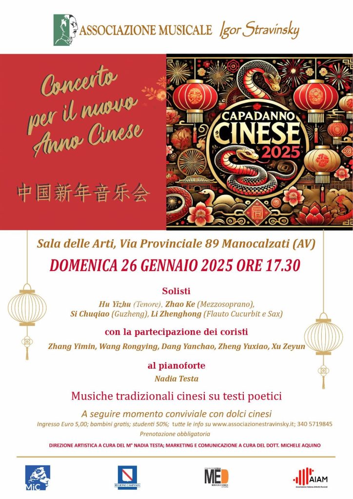 Nella Sala delle Arti a Manocalzati (Via Provinciale 89) verranno proposte Musiche tradizionali cinesi su testi poetici. Ad eseguirli numerosi allievi cinesi dei Conservatori campani ed alcuni solisti cinesi già laureati al Conservatorio di Avellino che si stanno facendo conoscere in Opere liriche in cartelloni italiani. Solisti saranno il tenore Hu Yizhu (Alfredo), ed il mezzosoprano Zhao Ke (Coco), che proporranno canzoni evocative quali “Nostalgia di casa”, “La notte della Festa delle Lanterne”, “Fiori di primavera e di autunno”, “Il liuto di Broccato”, ed “Il canto della donna dai capelli d’argento”. Si Chuqiao invece presenterà al pubblico irpino lo strumento tipico cinese dal nome “Guzheng” eseguendo un brano dalle tipiche armonie orientali. Li Zhenghong invece eseguirà brani cinesi sul “Flauto Cucurbit”. Il concerto si concluderà con l’esecuzione di un Inno tipico cinese eseguito da tutti i solisti coadiuvati dai coristi Zhang Yimin, Wang Rongying, Dang Yanchao, Zheng Yuxiao, Xu Zeyun e diretti da Hu Yizhou. Al pianoforte Nadia Testa. A seguire momento conviviale con dolci cinesi. Prenotazione obbligatoria fino ad esaurimento posti a sedere (whatsapp o e mail): 340 5719845; associazionestravinsky@yahoo.it . Ingresso Euro 5,00; bambini gratis; studenti 50%. Tutte le info su www.associazionestravinsky.it .