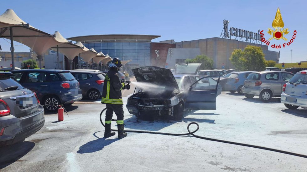 Questa mattina, verso le ore 10:30, i Vigili del Fuoco del Distaccamento di Marcianise sono intervenuti nell’area parcheggio del centro commerciale “Campania”, per un incendio che ha interessato un’autovettura. Il conducente, dopo aver visto del fumo uscire dal cofano, subito ha allertato i soccorsi. Immediatamente giunti sul posto i Vigili del fuoco si sono adoperati prima nel contenere e poi nello spegnere l’incendio che aveva interessato tutta la parte anteriore del veicolo alimentato a G.P.L., impedendo che lo stesso si propagasse agli altri veicoli parcheggiati e limitando i disagi per gli ospiti del centro commerciale.