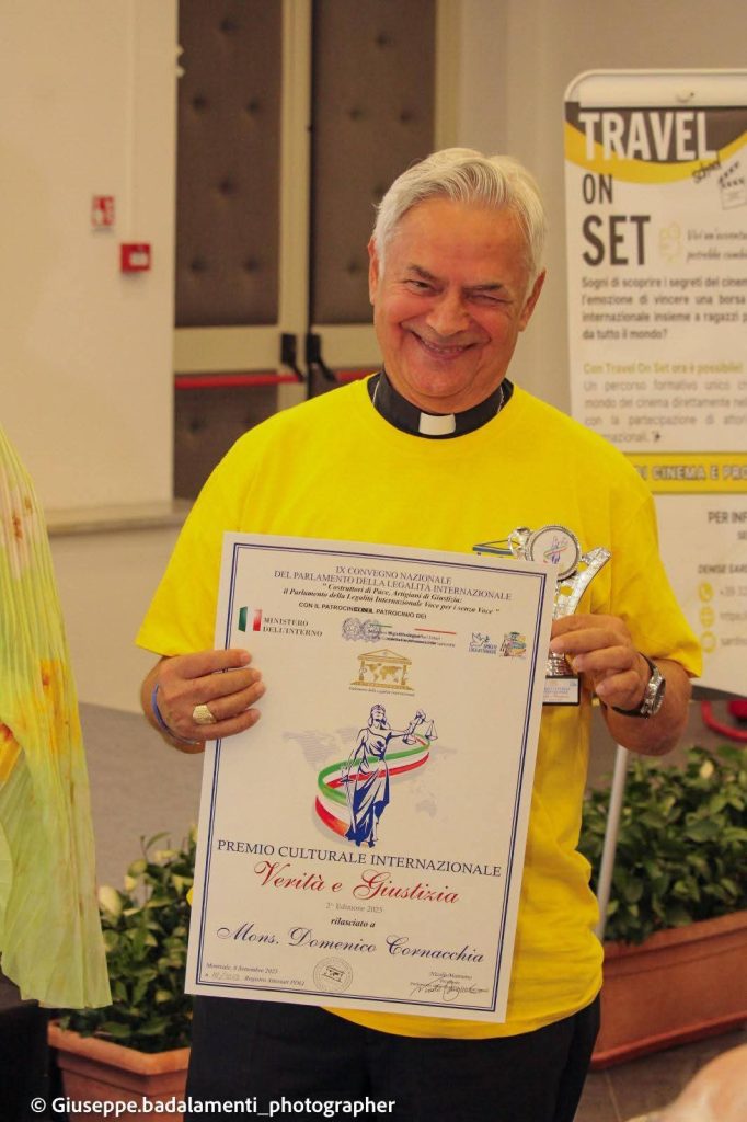 Al nono convegno nazionale del Parlamento della Legalità Internazionale, svoltosi a Terrasini, in provincia di Palermo, e animato da personalità istituzionali ed ecclesiastiche provenienti da tutta Italia e da diverse parti del mondo, è stata annunciata una nomina di straordinario valore simbolico e spirituale: Monsignor Domenico “Mimmo” Cornacchia, Vescovo di Molfetta-Ruvo-Giovinazzo-Terlizzi, è stato scelto come nuova guida spirituale del movimento. Il convegno del Parlamento della Legalità Internazionale è stato organizzato dal presidente Nicolò Mannino, con il sostegno del vicepresidente Salvatore Sardisco e della coordinatrice dello staff di presidenza Helga Guardì. Una cornice che ha dato forza e prestigio a un evento che ha visto ancora una volta l’intreccio fecondo tra istituzioni e Chiesa, società civile e giovani generazioni. Il Parlamento della Legalità Internazionale, fondato e presieduto da Mannino, ha voluto così affidarsi alla luce di un pastore che porta nel cuore l’eredità di una diocesi che fu segnata dalla voce profetica di Don Tonino Bello. Monsignor Cornacchia, infatti, è considerato la naturale continuazione spirituale di quella testimonianza evangelica che Don Tonino ha lasciato come dono alla Chiesa e alla società: una voce di pace, giustizia e prossimità ai più fragili. Durante il convegno, Mons. Cornacchia ha ricevuto anche il Premio Internazionale “Verità e Giustizia”, accogliendo con umiltà e gioia la nomina. In una lettera di ringraziamento a Nicolò Mannino, il Vescovo ha rivolto un pensiero di rara intensità: «Continua ad essere l’ala di riserva di chi non può volare», richiamando il senso più alto della missione cristiana e umana: farsi sostegno per chi è stanco, voce per chi non ha voce, coraggio per chi vive nell’ombra della rassegnazione. Il presidente Mannino, visibilmente commosso, ha sottolineato l’importanza di questa scelta per il futuro del movimento: “Avere Monsignor Cornacchia come guida spirituale significa respirare ogni giorno l’eredità di Don Tonino Bello. È un dono che ci ricorda che la legalità non è solo norma, ma soprattutto amore che diventa giustizia, fede che diventa speranza”. Con Monsignor Domenico Cornacchia come guida spirituale, il Parlamento della Legalità Internazionale si prepara a rafforzare il proprio cammino di testimonianza, rinnovando l’impegno a difendere la dignità della persona e a diffondere la cultura della pace e della giustizia.