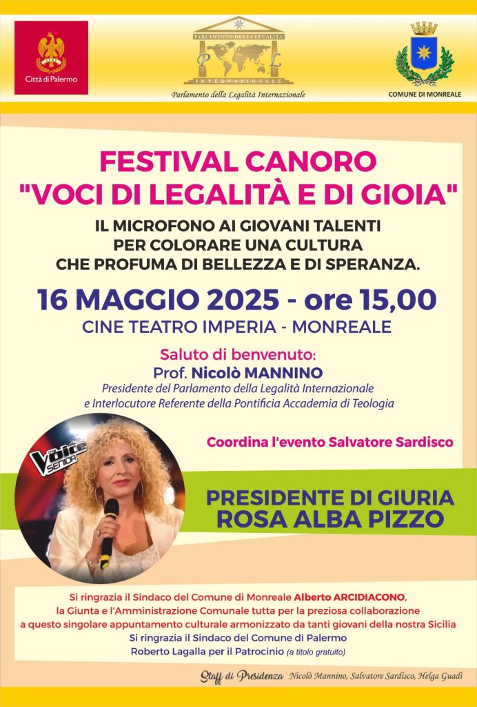 Arriveranno dalla provincia di Catania come pure da quella di Trapani compresa Palermo. È l’ esercito gioioso dei piccoli, dei bambini che sognano un mondo migliore e non puntano il dito contro nessuno ma guardano il cielo per invocare un presente solare. Sono gli adolescenti e i giovani che da anni seguono il.progetto formativo culturale RICERCATORI DELL ALBA e che portano nel cuore note musicali che inneggiano a un mondo senza odio e invitano ” i grandi ” della ferialita ‘ ad abbassare la maschera del finto buonismo e parlare col cuore in mano disarmendo mente e cuore dall odio e dall’ indifferenza. È l’ esercito silenzioso ma numeroso del Parlamento della Legalità Internazionale con le sue numeeose ambasciate culturali ( dalla scuola allievi della Polizia di Stato di Peschiera del Garda, alla Bocconi e in tante scuole) che venerdi sedici maggio saranno a Monreale ( dove ha dimora la sede di Presidenza del movimento) presso il Cine teatro Imperia per dare vita al Festival ” Voci di Legalità e di Gioia ” 2025. Nicolò Mannino e Salvatore Sardisco rispettivamente presidente e vice presidente del parlamento della legalità internazionale registrano in queste ore tante adesioni sia di studenti che di genitori. Salvatore Sardisco cura nei dettagli ogni particolare mentre dal Comune di Palermo e di Monreale arrivano ( a titolo gratuito) i Patrocini a questo singolare appuntamento culturale che ha un solo obiettivo ” Educare i giovani- dice Salvatore Sardisco- a conoscere il proprio talento artistico, canoro, letterario e sportivo e mettersi in gioco per cantare la bellezza della vita che è semplicemente un dono d’ amore ” Nicolò Mannino, che in queste ore registra tanti inviti per dialogare con i giovani da nord a sud del Paese, precisa ” LA nostra forza sono proprio i bambini, gli adolescenti e i giovani, loro che non conoscono rancori e meccanismi di cattiveria gratuita e che sanno distinguere il vero dal falso. Ringrazio affettuosamente Salvatore Sardisco e tanti collaboratori di Presidenza- conclude Nicolò Mannino- che in queste ore stanno lavorando incessantemente per dare voce a un meraviglioso Festival che è già un successo di bellezza e di amore alla vita “.