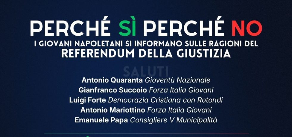 Un momento di confronto pubblico per discutere le diverse posizioni sul referendum della giustizia. È questo l’obiettivo dell’incontro dal titolo “Perché Sì Perché No – I giovani napoletani si informano sulle ragioni del referendum della giustizia”, in programma sabato 7 marzo alle ore 17:30 presso la Sala Gallery dello Stelle Hotel, in Corso Meridionale. L’iniziativa nasce con l’intento di offrire uno spazio di informazione e approfondimento aperto al pubblico, con particolare attenzione ai giovani, chiamati a confrontarsi su uno dei temi più discussi del dibattito politico e istituzionale nazionale. L’evento si aprirà con i saluti di Antonio Quaranta, esponente di Gioventù Nazionale, Gianfranco Succoio, segretario regionale di Forza Italia Giovani, Luigi Forte della Democrazia Cristiana con Rotondi, Antonio Mariottino di Forza Italia Giovani ed Emanuele Papa, consigliere della V Municipalità di Napoli. Nel corso dell’incontro verranno presentate le ragioni del “Sì” al referendum da Giuseppe Ferrante, assessore del Comune di Palma Campania, Melania Passeggio, specializzata in misure di prevenzione patrimoniali, Marco Spina dei Giovani Repubblicani, l’avvocato penalista Pasquale Mastropasqua e Giuseppe Tuccillo, dottorando in diritto penale. A rappresentare invece le posizioni favorevoli al “No” interverranno Naomi Iodice del Partito Democratico, Ludovica Gentile e Luca Sorrentino dei Giovani Democratici, il giurista Giovanni Ferrara e Francesco Polio, consigliere della II Municipalità di Napoli. A moderare il confronto sarà la giornalista Cristina Somma. L’appuntamento punta a favorire un dibattito aperto e pluralista, mettendo a confronto posizioni diverse per contribuire a una maggiore consapevolezza tra i cittadini su un tema centrale per il sistema giudiziario italiano.