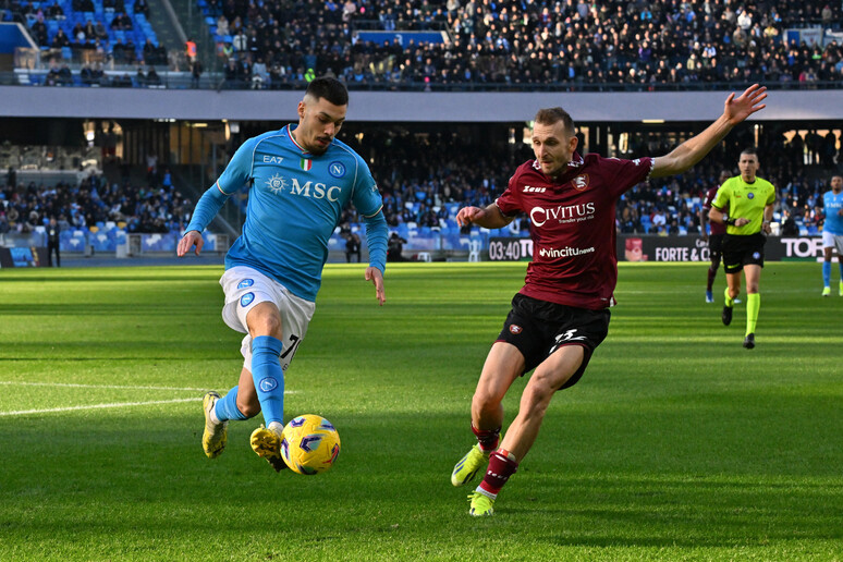 La partita si è accesa al 28′ del primo tempo quando un ispirato Antonio Candreva ha battuto il portiere azzurro con un meraviglioso tiro a giro che ha infilato il pallone nell’angolo più lontano della porta. 1-0 per la Salernitana e Napoli costretto a inseguire. La reazione del Napoli si è fatta attendere fino ai tempi di recupero quando, su suggerimento del Var, l’arbitro Marinelli ha concesso un penalty per un fallo su Simeone che Politano ha trasformato freddo dal dischetto.
