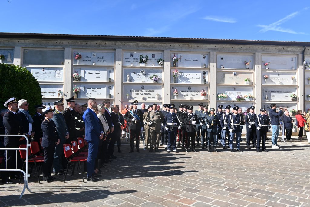 Nella mattinata odierna, alle ore 10:00, presso il Sacrario Militare del Cimitero Monumentale di Potenza ha avuto luogo, come ogni anno, la cerimonia di commemorazione dei Caduti di tutte le guerre. La solenne ricorrenza si è svolta alla presenza delle locali Autorità civili e militari che, unitamente ad una nutrita rappresentanza delle varie Associazioni Combattentistiche e d’Arma, sono intervenute per la cerimonia. Per l’occasione è stata celebrata una Santa Messa in suffragio presieduta da Sua Eccellenza Monsignor Davide Carbonaro, Vescovo dell’Arcidiocesi di Potenza – Muro Lucano – Marsico Nuovo, e concelebrata dal Cappellano Militare Don Giovanni Caggianese, sacerdote collaboratore per l’assistenza spirituale al personale del Comando Legione Carabinieri “Basilicata”. La celebrazione dei Santi Misteri con gli onori militari resi da un picchetto armato interforze a chi si è immolato per la Patria e il bene comune è culminata con il momento, particolarmente evocativo e sentito, della deposizione di una corona di alloro ad imperituro ricordo dell’intramontabile coraggio e nobiltà d’animo di quegli Eroi.