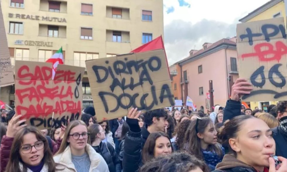 “Abbiamo diritto alla doccia”. È uno degli slogan urlati da cittadini e studenti scesi in piazza a Potenza nella mattinata di oggi, per protestare contro la crisi idrica che sta colpendo 29 comuni, tra cui il capoluogo, e 140mila persone. Sono in centinaia a manifestare e a criticare la soluzione scelta dal presidente della Regione Vito Bardi, nominato dal governo commissario per l’emergenza. Ovvero razionare tutti i giorni l’acqua con uno stop dalle ore 18.30 alle 6.30, tranne il sabato quando è previsto dalle 23 alle 6.30. Una manovra necessaria per il governatore per far andare avanti i lavori sulla diga del Camastra ormai quasi vuota. Il progetto dovrebbe terminare il 20 novembre, il giorno in cui Bardi ha convocato i sindaci dei comuni colpiti dal disagio. Dal 17 ottobre, oramai è in atto il razionamento previsto dalla regione. Una chiusura concordata delle condotte per procedere il più spediti possibile con la messa a terra del progetto sulla diga del Camastra. Ma la soluzione sta avendo non pochi disagi per i cittadini che si sono dati appuntamento nel centro storico di Potenza. Per far sentire ancor di più la loro voce e unirsi alle proteste, gli studenti hanno rinviato la manifestazione di ieri, 15 novembre, del “No Meloni Day” per concentrare il disappunto sulle politiche della regione e la crisi idrica. Gli studenti hanno inneggiato cori e slogan anche contro il presidente Vito Bardi. Una delegazione dei manifestanti, insieme anche a rappresentanti di Cgil, Uil e Usb, sarà ricevuta dal prefetto di Potenza Michele Campanaro. I tre punti principali della manifestazione – hanno spiegato gli organizzatori del Comitato Acqua pubblica – sono: acqua pulita, trasparenza nella gestione e rispetto dei 140mila cittadini interessati dalle restrizioni quotidiane dell’erogazione idrica. Bardi ha comunicato ai primi cittadini «la propria disponibilità ad incontrarli mercoledì 20 novembre 2024, alle 12, a Potenza, nella Sala Verrastro». Il giorno in cui, in teoria, dovrebbero finire i lavori della diga.