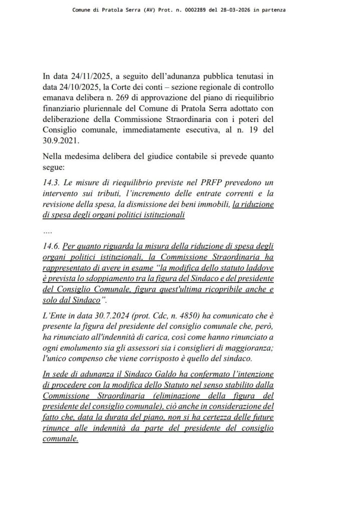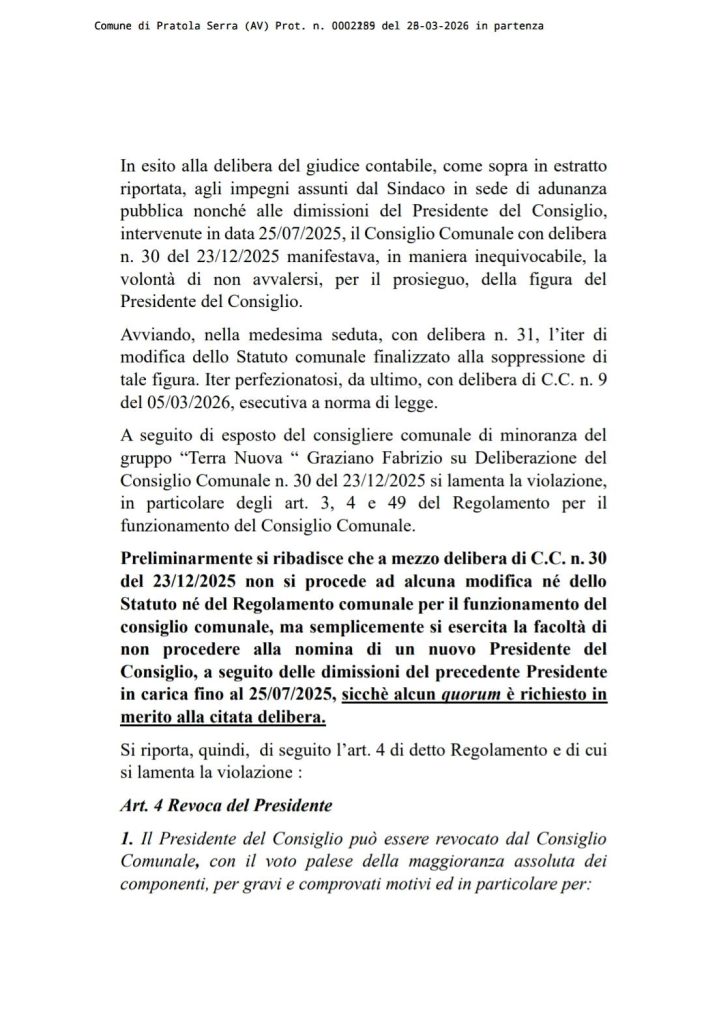 Non è più solo uno scontro politico. La vicenda che riguarda alcuni atti del Comune si sposta su un piano ben più delicato, quello della legittimità amministrativa e del rispetto delle procedure. Al centro della questione c’è il contenuto di un documento inviato alla Prefettura, firmato dal Segretario Comunale, nel quale si afferma che la delibera n. 30 del dicembre 2025 non avrebbe comportato alcuna modifica dello Statuto, modifica che sarebbe intervenuta soltanto nel marzo 2026. Un passaggio che apre interrogativi rilevanti: su quale base giuridica sarebbero state adottate le decisioni nel periodo compreso tra dicembre e marzo? Ulteriori perplessità riguardano la posizione del vicepresidente Bianca Galdo. Nel documento si fa riferimento alla possibilità di revoca secondo quanto previsto dal regolamento, ma allo stato non risulterebbe alcun atto formale in tal senso. Nessuna delibera, nessuna votazione ufficiale. Anzi, secondo quanto emerge, il vicepresidente sarebbe rimasto in carica almeno fino a marzo 2026, circostanza che troverebbe conferma anche nella convocazione del primo Consiglio Comunale successivo alle dimissioni di Vacchio. Da qui i dubbi sulla legittimità delle convocazioni effettuate in quel periodo e, di, sulla validità degli atti eventualmente adottati. Per chiarire la vicenda, è stata annunciata una segnalazione agli organi competenti, con l’obiettivo di verificare la correttezza della ricostruzione trasmessa alla Prefettura e accertare eventuali responsabilità. La questione, dunque, resta aperta e si sposta ora sul terreno delle verifiche istituzionali.