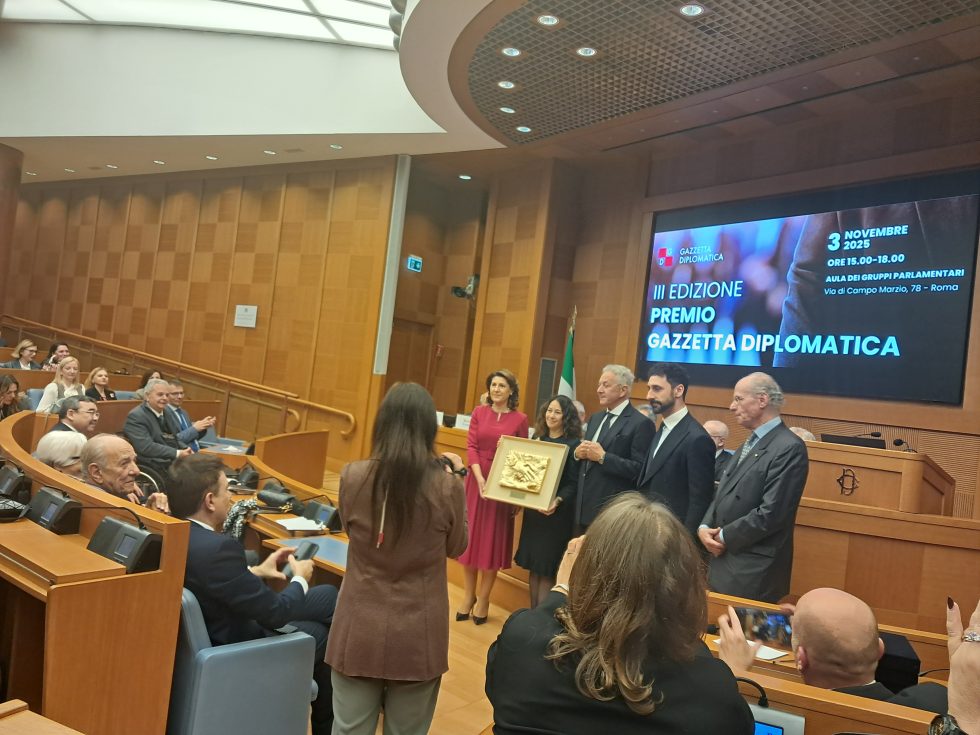 Elissa Ann Golberg è l’Ambasciatore dell’Anno 2025. Il prestigioso riconoscimento, tributato come consuetudine dalla rivista Gazzetta Diplomatica, è stato assegnato all’Ambasciatrice del Canada nell’ambito di una cerimonia che si è tenuta lunedì scorso presso la Camera dei Deputati, nell’Aula dei Gruppi Parlamentari, alla presenza di circa 200 ospiti tra autorità, diplomatici e rappresentanti istituzionali. A selezionare i vincitori del Premio è stata una giuria di esperti, formata da parlamentari, professionisti e diplomatici, presieduta dall’Ambasciatore Stefano Benazzo. L’iniziativa, promossa dalla testata diretta da Marco Finelli, celebra ogni anno l’eccellenza diplomatica e consolare, il dialogo tra i popoli e l’impegno per la cooperazione internazionale. Tra i parlamentari intervenuti, il segretario di presidenza Roberto Traversi, assieme ai deputati Fabio Porta della Commissione Affari Esteri di Monteciorio e Christian Di Sanzo, eletto nella Circoscrizione Nord e Centro America, e i Senatori Andrea De Priamo della Commissione Affari Costituzionali e Luigi Nave, Presidente dell’Integruppo Parlamentare Italia-Canada. Il Premio Gazzetta Diplomatica alla Carriera è stato conferito con particolare enfasi all’imprenditrice Anna Fendi, icona del Made in Italy e ambasciatrice culturale nel mondo. Come Console Onorario dell’Anno 2025 sono stati premiati Federico Cosenz (Lussemburgo, Palermo), Fortunato Giovanni Peron (Croazia, Bologna) e Valentina Mazza (Kazakhstan, Napoli). I Premi Speciali sono infine stati assegnati a Luiza Pufu (Ambasciata di Romania), Camillo della Nebbia (Esercito Italiano) e Federico Quadrelli (Comites Berlino).