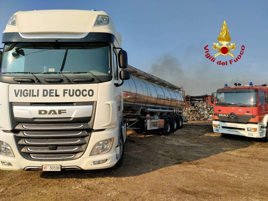 Prosegue senza interruzioni l’intervento dei Vigili del Fuoco del Comando Provinciale di Caserta per domare l’incendio divampato il 16 agosto all’interno di un capannone destinato allo smaltimento dei rifiuti, nel territorio comunale di Teano, in provincia di Caserta. Le fiamme hanno compromesso la stabilità della struttura, provocando il cedimento di parti dell’edificio. Questo ha reso necessarie operazioni complesse di abbattimento e rimozione delle sezioni metalliche danneggiate, eseguite con mezzi cingolati, ruspe e pale meccaniche. A coordinare le attività è direttamente il Comandante Provinciale, architetto M.A. D’Agostino, con il supporto costante dei funzionari del Comando. Sul posto sono impegnati circa trenta uomini, coadiuvati da tre autobotti provenienti da Caserta, un’autobotte del Comando di Salerno e, dalla serata di ieri, una cisterna da 33.000 litri d’acqua inviata dal Comando di Latina. Le squadre continuano a lavorare anche nelle ore notturne, mantenendo un presidio costante nell’area dell’impianto. Oltre alle operazioni di spegnimento, vengono effettuati monitoraggi ambientali e controlli di sicurezza, per evitare ulteriori rischi legati alla precarietà delle strutture crollate. In supporto agli operatori, vengono utilizzati anche robot antincendio per raggiungere le zone più pericolose e di difficile accesso. L’obiettivo dei vigili del fuoco è garantire il completo spegnimento del rogo e la messa in sicurezza del sito, a tutela dell’ambiente e della salute pubblica.