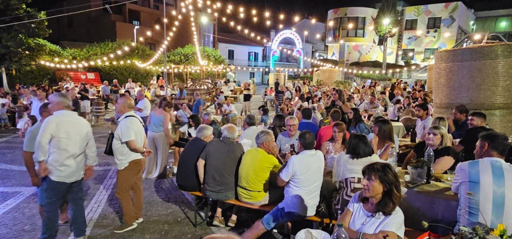 Domenica, 11 agosto 2024, felice mattina di un’estate vallesaccardese in cui si respira la gioia dell’attesa per il lieto evento della sera: CUM VIVERE, la tavola dell’armonia, ideato e realizzato dalla Pro loco Vallesaccarda Aps. Il gruppo associativo rappresentato da Sonia Cerullo e Gerardo Cipriano, è un centro gravitazionale intorno a cui ruotano idee, progetti, propositi finalizzati alla valorizzazione del territorio e delle sue innumerevoli risorse. L’evento è tra i più suggestivi realizzati negli ultimi tempi. La piazza del paese si apre alla laboriosità e all’ingegno di coloro che sanno dare forma alle idee; ognuno pone a vantaggio della comunità il proprio impegno affinché tanta operosità dia generosi frutti. Il tema dell’evento CUM VIVERE pone in un ruolo di centralità la TAVOLA, legata al concetto di armonia, un termine di derivazione specificamente musicale in cui i suoni consonanti generano forze sonore in perfetto equilibrio. Significato profondo che estende la valenza dell’armonia all’aspetto delle più autentiche relazioni umane di cui il mondo ha bisogno. L’Armonia traduce e sintetizza la capacità di ogni uomo di allinearsi alla Bellezza in ogni sua forma, di valorizzare la pratica esistenziale del CUM VIVERE dinnanzi alla tavola, luogo ideale dove fare crescere il cuore per creare ponti di comunicazione. Ed è proprio questa la finalità della serata, il cibo come strumento di sopravvivenza che assume il significato ancor più profondo del “mangiare insieme”, uno degli aspetti più importanti dell’agire dell’uomo. Nella piazza di Vallesaccarda, due enormi piloni di paglia agganciano una bianca porta simbolica attraverso cui è possibile accedere ad un mondo di antichi valori, quasi nascosti nei cassetti di una memoria contadina che ancora oggi insegna! Ci riappropriamo di un mondo passato attraverso un suggestivo scenario: una grande tavola comunitaria che parte dalle prelibatezze culinarie per arrivare al senso di condivisione, di appartenenza alla nostra terra e ai legami autentici che la contraddistinguono. Prendono forma tante tavolate tra cui ben 9 che si ispirano all’indole e alla maestria dei partecipanti al Concorso per la tavola più bella. È sera, tutto è pronto! Appena arrivati si coglie la meraviglia che alberga negli allestimenti delle tavole; per alcune di esse, l’intuito suggerisce da quale mano d’ingegno e di creatività, potessero derivare! Le long de la Rivière de Magne’, Pan e suc, Too spicy, Il vento dell’amicizia, La chiazza e Lu m’sal, Quiet